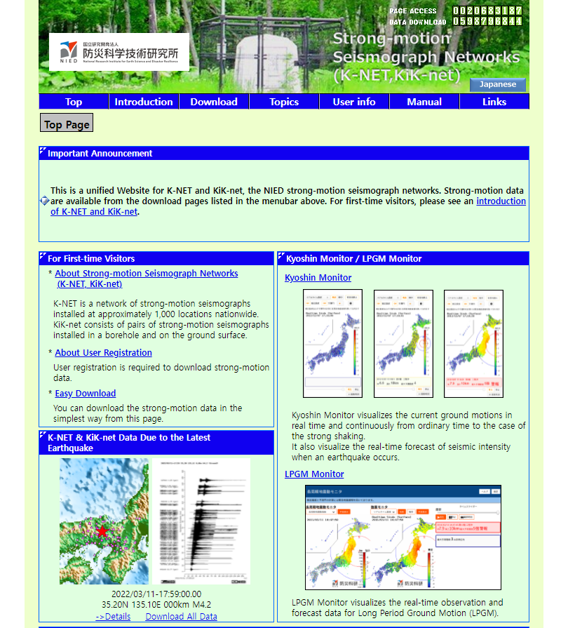 지진에 상대적으로 안전한 한국 연구자들에게는 생소할지 모르지만, 해외의 지진연구자들에게는 꽤나 유명한 홈페이지이다.